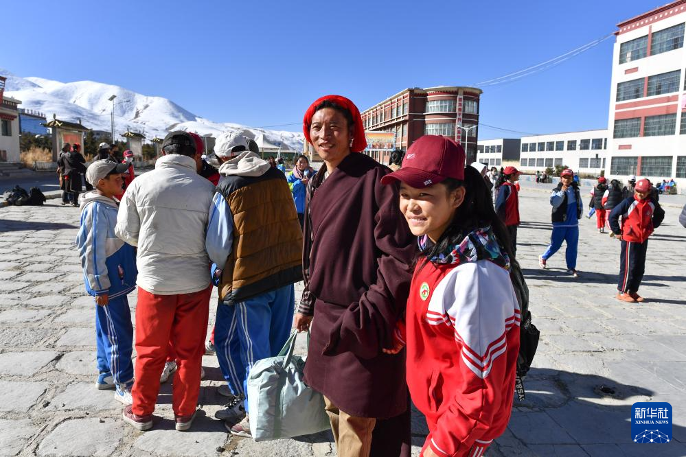 斯曲卓瑪?shù)母赣H來學(xué)校接女兒回家(11月15日攝)。新華社記者 晉美多吉 攝