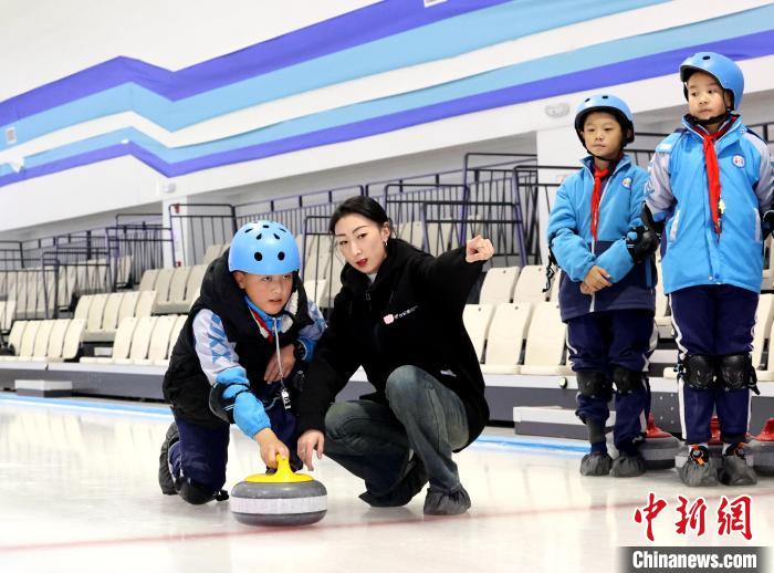 圖為教練員指導冰壺技巧。薛蒂 攝