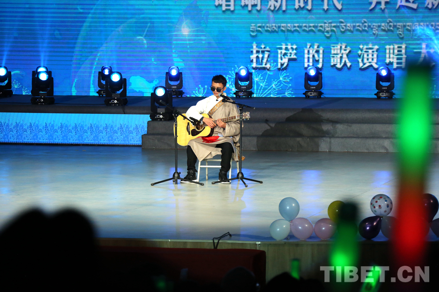 資料圖:視障人士拉巴桑珠就讀于拉薩師范高等??茖W(xué)校,他在拉薩師范高等專科學(xué)校校園“十佳歌手”大賽中獲得冠軍