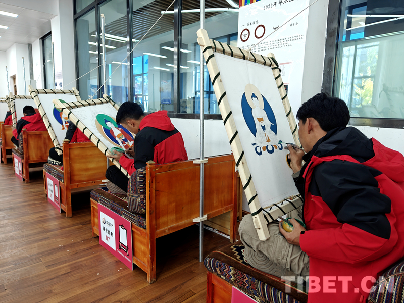 資料圖:西藏自治區(qū)第五屆職業(yè)技能大賽唐卡繪制組選手正在比賽