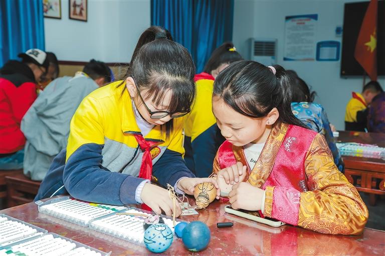 圖為山南黃山兩地學(xué)生在課堂上互動協(xié)作,共同完成手工作業(yè)。記者 武沛濤 攝