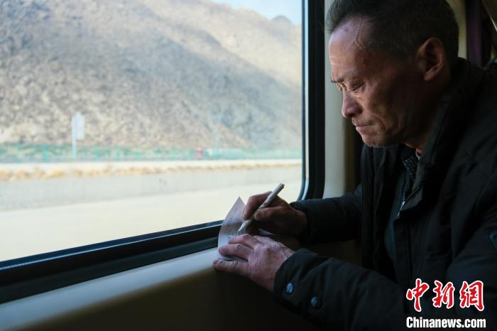 2月1日,Z166次列車上,返鄉(xiāng)的魏恩銀在填寫“旅客健康登記卡”,這是高海拔青藏鐵路上旅客獨有的健康登記措施。 中新社記者 江飛波 攝