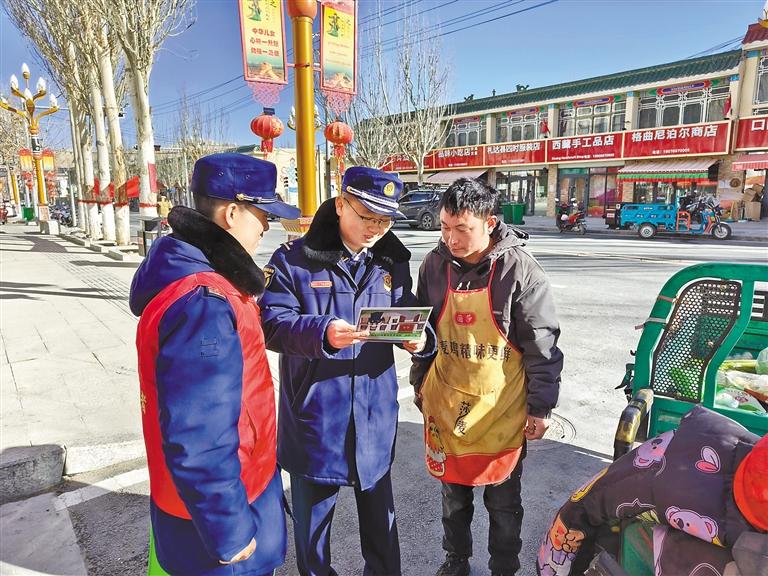 圖為消防宣傳員向沿街商戶科普消防安全知識。