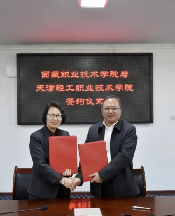 李云梅表示,天津輕工職業(yè)技術(shù)學(xué)院高度重視與西部院校開展合作,此前學(xué)院已與新疆和田、西藏昌都等地區(qū)職業(yè)院校建立了良好的合作關(guān)系并取得了豐碩的成果。天津輕工職業(yè)技術(shù)學(xué)院與西藏職業(yè)技術(shù)學(xué)院同為全國(guó)新能源行業(yè)產(chǎn)教融合共同體成員單位,具有良好的合作基礎(chǔ),希望通過此次《合作協(xié)議》的簽署和實(shí)施,進(jìn)一步整合學(xué)校資源,在天津輕工職業(yè)技術(shù)學(xué)院新能源等優(yōu)勢(shì)領(lǐng)域,集中力量為西藏職業(yè)技術(shù)學(xué)院提供支持,兩校攜手共同譜寫東西部院校合作新篇章。西藏職業(yè)技術(shù)學(xué)院黨委副書記、院長(zhǎng)陳飛對(duì)天津輕工職業(yè)技術(shù)學(xué)院在東西部院校合作中作出的積極貢獻(xiàn)表示感謝,表示以此次簽約為契機(jī),共同推動(dòng)兩校在多個(gè)領(lǐng)域交流合作、協(xié)同發(fā)力,共同推動(dòng)協(xié)議內(nèi)容走深走實(shí),促進(jìn)自治區(qū)高等職業(yè)教育高質(zhì)量發(fā)展。