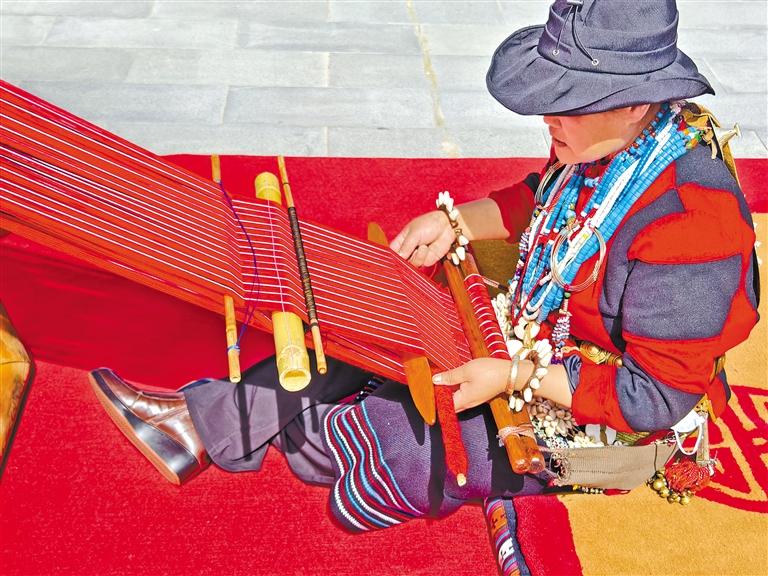 在林芝市非遺活動現(xiàn)場,群眾展示珞巴織布。記者 謝筱純 攝
