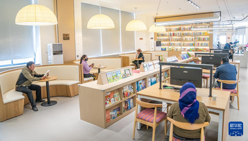 那曲市色尼區(qū)群眾在“溫暖嘉·色尼城市書房”閱讀書籍(6月17日攝)。新華社記者 丁增尼達 攝