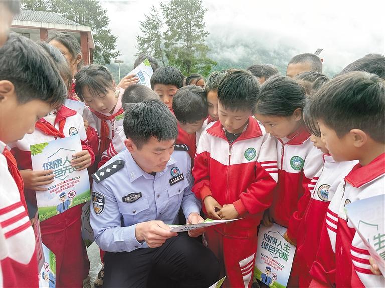 墨脫縣格當(dāng)鄉(xiāng)邊境派出所民警為格當(dāng)鄉(xiāng)小學(xué)的師生們講解禁毒小知識。記者 王敏 通訊員 郎玲 攝