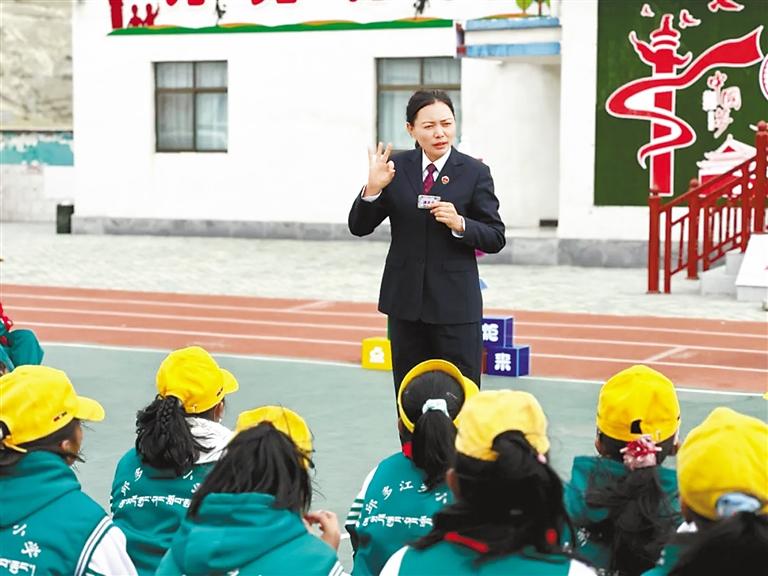 日前,曲松縣人民檢察院的檢察官在下落國家濕地公園舉行“法治小課堂”,為學(xué)生沉浸式講授濕地保護領(lǐng)域公益訴訟典型案件及政策法規(guī)。記者 丹增平措 攝