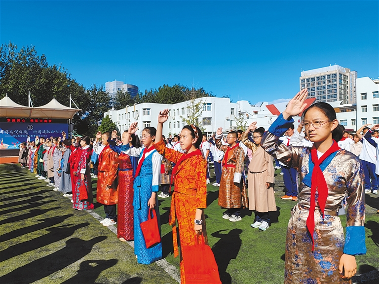拉薩北京實(shí)驗(yàn)中學(xué)舉行升國(guó)旗儀式。