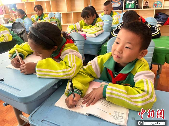 與此同時(shí),四年級(jí)2班的漢族學(xué)生劉念恩正在上藏語(yǔ)文課,他抄寫(xiě)有些慢,同桌的女生立刻用筆幫他找到對(duì)照位置。“我們班只有我一個(gè)漢族,我也要上藏語(yǔ)文課,同學(xué)們和我關(guān)系非常好,我們經(jīng)常一起踢足球?!眲⒛疃髡f(shuō)。