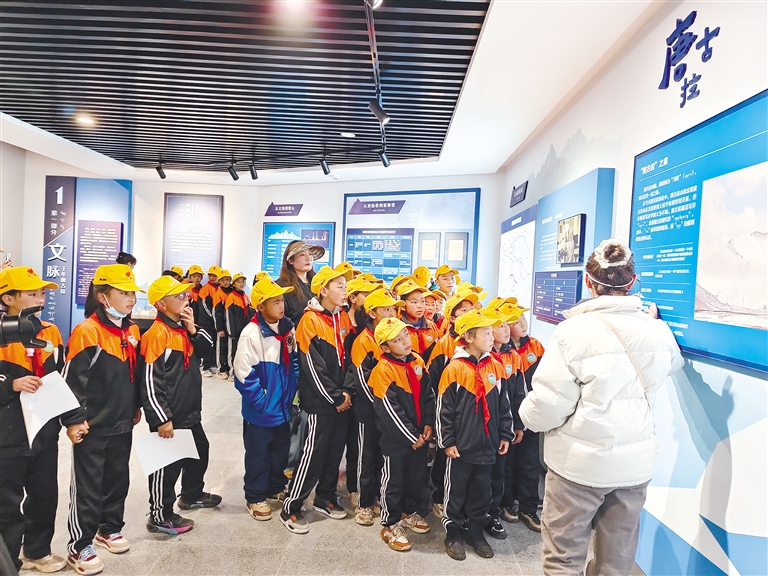 圖為國慶節(jié)來臨之際,安多縣中小學(xué)生參觀安多唐古拉陳列館,學(xué)習(xí)和傳承唐古拉區(qū)域承載的中華優(yōu)秀文化,進(jìn)一步鑄牢中華民族共同體意識。記者 高玉潔 趙書彬 攝