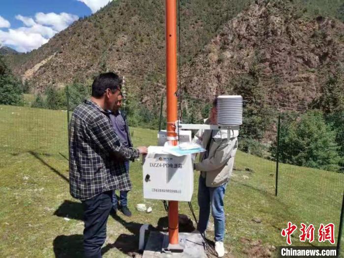 圖為2019年,西藏自治區(qū)氣象局調(diào)試氣象站設(shè)備。資料圖 西藏自治區(qū)氣象局供圖 攝