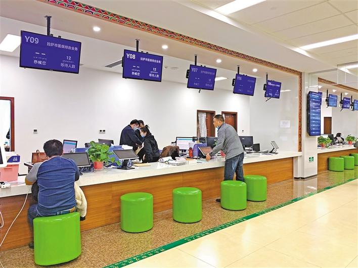 在拉薩市市民服務(wù)中心醫(yī)?!叭墶狈?wù)窗口,市民在辦理業(yè)務(wù)。記者 劉文濤 攝