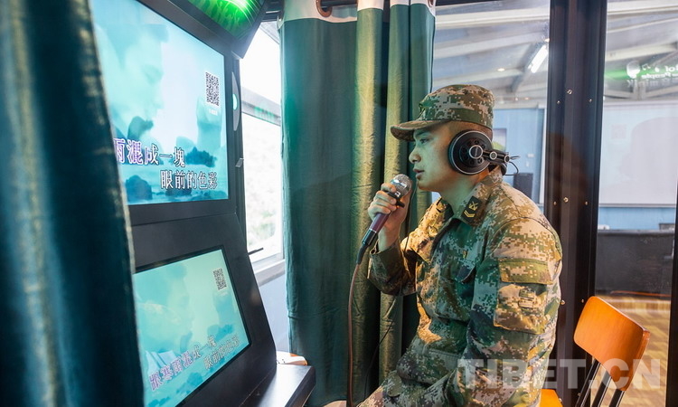 圖為邊防官兵正在移動(dòng)唱吧內(nèi)唱歌 攝影:趙耀