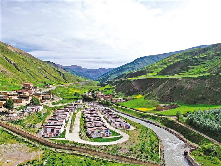 清晨,記者一行來到丁青縣丁青鎮(zhèn)仲佰村。鄉(xiāng)道兩側(cè)一排排紅白相間的藏式小樓整齊排列,樓頂上一面面鮮艷的五星紅旗迎風(fēng)飄揚(yáng)。