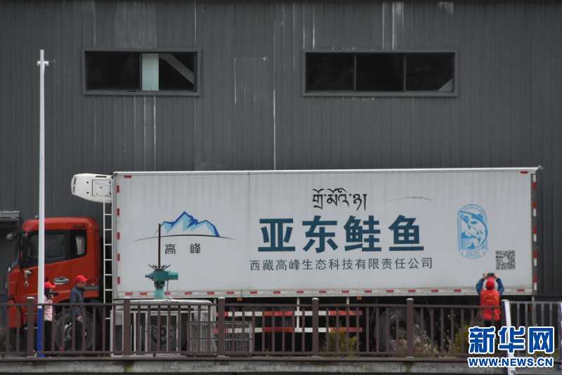 9月13日拍攝的帶有亞東鮭魚標(biāo)識的卡車。新華網(wǎng) 張宸 攝