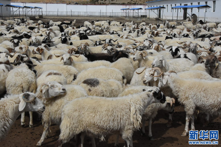 9月14日,亞?wèn)|縣堆納鄉(xiāng)古汝村崗巴羊生態(tài)養(yǎng)殖合作社里的羊群。新華網(wǎng) 張宸 攝