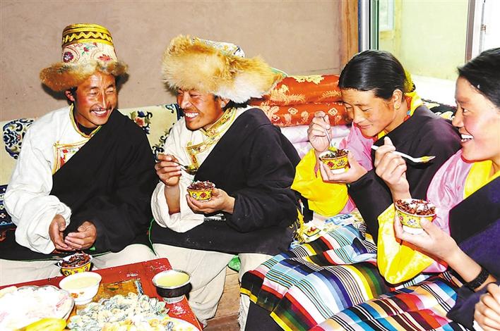 麥曲河畔,察雅縣的蘋果熟了,紅彤彤的蘋果散發(fā)著誘人的清香;藏東西南,洛隆縣的糌粑飄香,糌粑廠內(nèi)熱火朝天生產(chǎn)忙;大山深處,西藏昌都市類烏齊縣扎西次措成立的創(chuàng)業(yè)就業(yè)基地,帶動全縣貧困婦女就業(yè)增收;茶馬古道上,芒康縣加它村黨支部書記江措拿起畫筆,勾勒起“脫貧花開節(jié)節(jié)高”的美麗畫卷……