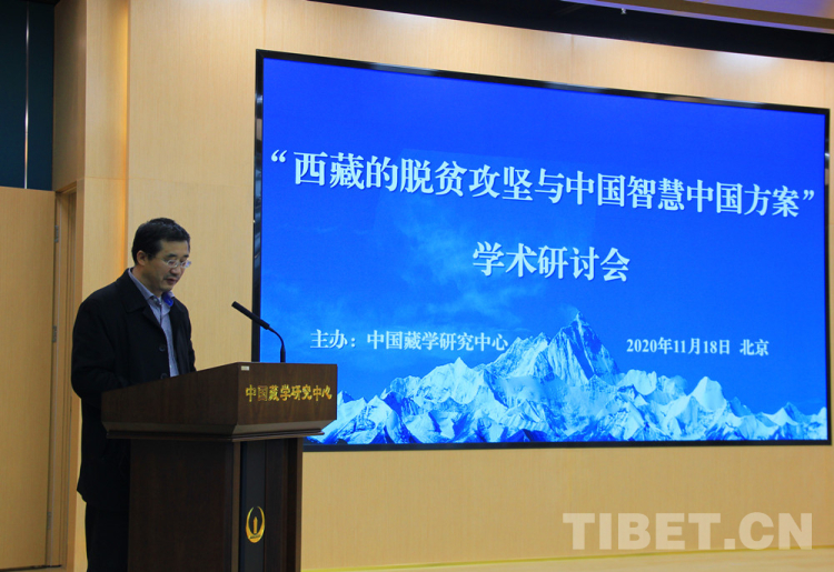 中國(guó)西藏網(wǎng)訊 11月18日,“西藏的脫貧攻堅(jiān)與中國(guó)智慧中國(guó)方案”學(xué)術(shù)研討會(huì)在中國(guó)藏學(xué)研究中心舉辦。中國(guó)藏學(xué)研究中心黨組書記陳宗榮出席會(huì)議并講話,中國(guó)藏學(xué)研究中心總干事鄭堆主持會(huì)議。來自中國(guó)社會(huì)科學(xué)院、中央民族大學(xué)、中國(guó)農(nóng)業(yè)大學(xué)、中國(guó)社會(huì)科學(xué)院大學(xué)等高校和科研機(jī)構(gòu)近60名專家學(xué)者參加了研討會(huì)。
