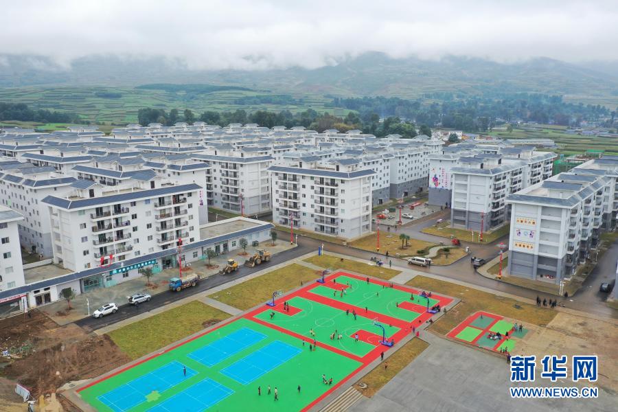 金陽縣山江鄉(xiāng)老寨子村易地扶貧集中安置點和通村公路(6月7日攝,無人機(jī)照片)。新華社記者 江宏景 攝