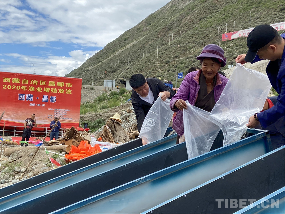 在工作人員協(xié)助下,老阿媽把一袋袋魚苗放入江中。據(jù)老阿媽說(shuō),當(dāng)年十八軍進(jìn)藏路過(guò)這里,帶的糧食不多,他們不向當(dāng)?shù)厝苏骷Z,有些人餓得浮腫。江河中的魚兒好抓,但沒(méi)有一個(gè)戰(zhàn)士違反紀(jì)律去抓魚。藏族敬畏魚,不捕魚,不吃魚。解放軍尊重當(dāng)?shù)仫L(fēng)俗,即使餓死也不抓魚充饑。