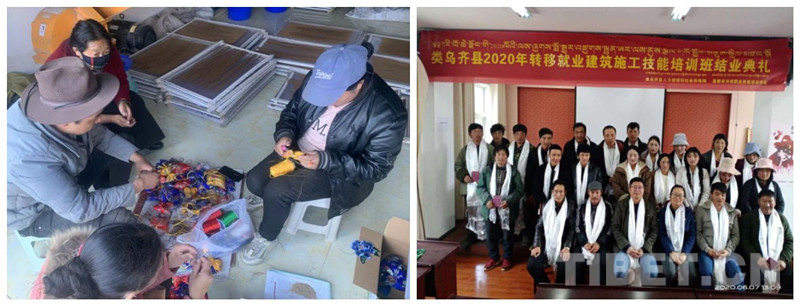 左圖為類烏齊縣農(nóng)牧民通過加工手工藝品增收;右圖為類烏齊縣2020年轉(zhuǎn)移就業(yè)建筑施工技能培訓(xùn)班結(jié)業(yè)典禮