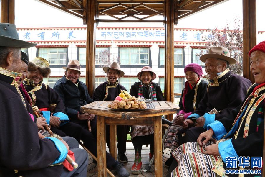 西藏山南市瓊結(jié)縣五保戶集中供養(yǎng)中心的老人們在過中秋佳節(jié)(2016年9月14日攝)。新華社記者 普布扎西 攝 在社會保障資金投入方面,西藏完善了城鄉(xiāng)居民最低生活保障制度,最低保障標(biāo)準(zhǔn)分別達(dá)到月人均847元、年人均4713元。同時,五保供養(yǎng)和孤兒收養(yǎng)實現(xiàn)“雙集中”,農(nóng)村特困人員集中供養(yǎng)救助生活補助達(dá)到年人均13213元,分散供養(yǎng)救助生活補助達(dá)到年人均7070元。