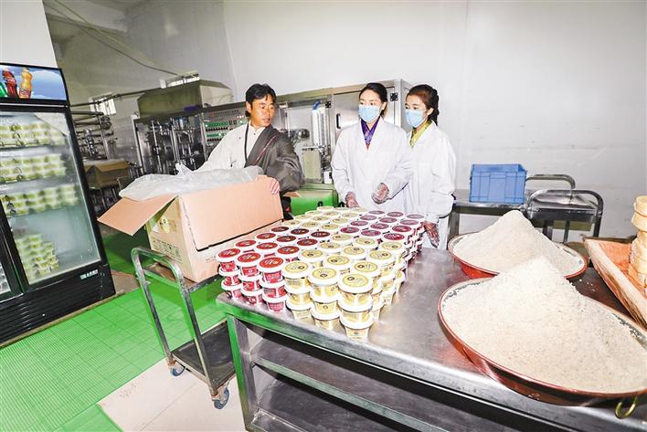 圖為墨竹工卡縣斯布鄉(xiāng)牦牛奶制品專業(yè)合作社的工作人員在加工特色奶制品。記者 格桑吉美 攝