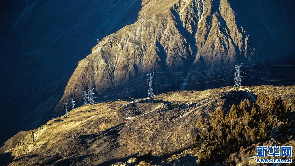 藏中聯(lián)網(wǎng)工程輸電線路(2017年12月20日攝)。新華社發(fā) (盧忠東 攝)