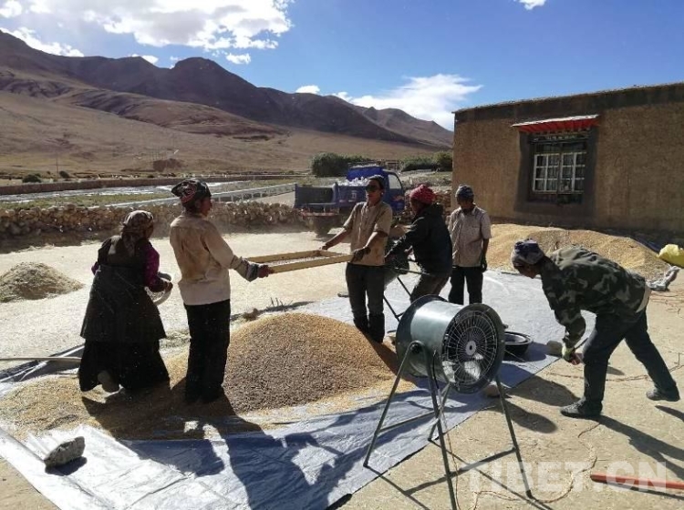 工作隊根據(jù)在前期深入群眾家中和田間地頭了解到的“孤困寡”等人群在秋收中存在勞動力緊缺等問題,號召全體駐村隊員和村黨員干部組成青稞秋收黨員志愿服務(wù)隊自2017年9月13日起,對村孤寡戶、缺乏勞動力戶及特困戶進行秋收幫扶,僅用3天就完成困難戶的收割,解決了他們勞力緊缺的燃眉之急。9月底,拉木堆村的秋收工作已經(jīng)進入收尾階段。村民們都說,今年因為有收割機,收割時間比去年縮短了兩天。當(dāng)全村408畝青稞全部收割完畢,堆置田地中晾曬。聽說今年糧食產(chǎn)量預(yù)計將比上年增收10%左右,再創(chuàng)新高,從干部到群眾,人人樂開了花。