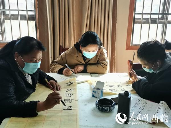 村民瓊達(dá)自幼喜歡書法,但以前忙于生計(jì)沒(méi)時(shí)間,再加上無(wú)人教授,所以也就只能想想?!艾F(xiàn)在有老師教,真好。”從2019年開(kāi)始練習(xí)到現(xiàn)在,她已經(jīng)寫得一手漂亮的毛筆字。一有時(shí)間,就會(huì)和好友們?cè)谶@里寫上一段,沉浸在墨香中,她說(shuō)幸福感倍增。