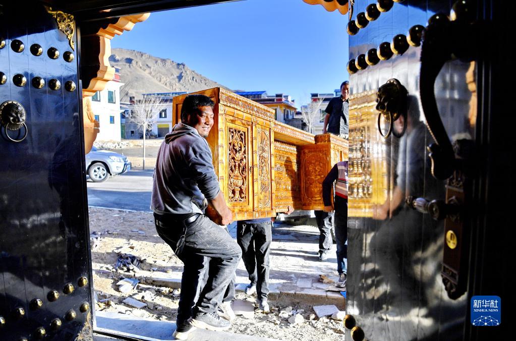 次旺堅參正往新家搬家具。 新華社記者 張汝鋒 攝