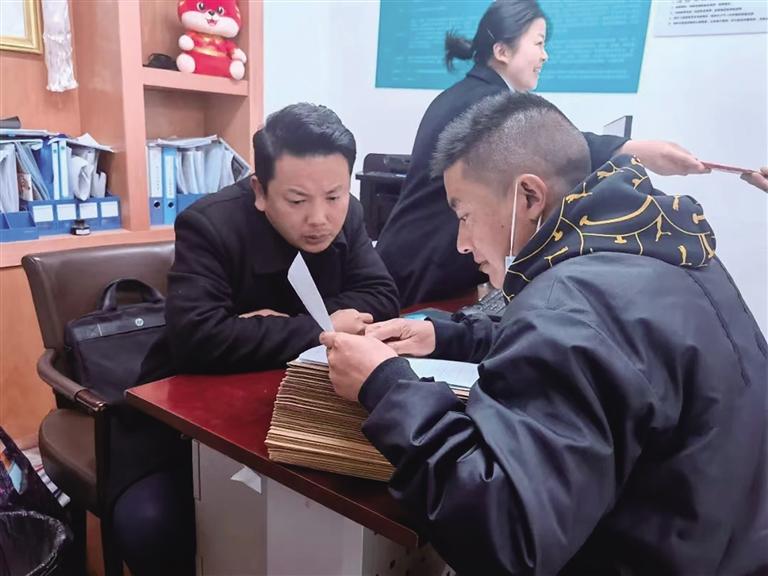 人行拉薩中支工作人員給市民講解貸款業(yè)務流程。