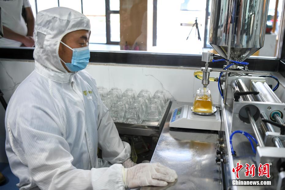 5月28日,在海拔3650米的西藏自治區(qū)山南市貢嘎縣巔峰貢蜜蜂巢一號綜合體的養(yǎng)蜂基地,工作人員正在取蜜。據(jù)悉,該地的巔峰貢蜜項目是湖南長沙市第九批援藏工作隊牽頭孵化、推進并建設壯大的全新項目。項目于2020年5月開始建設,目前已經(jīng)完成蜂巢一號綜合體、透明工廠、陽光餐廳以及八個蜜蜂養(yǎng)殖示范基地,帶動藏族同胞就業(yè)358人,投產(chǎn)之后第一年銷售額達到800萬元。圖為工作人員進行取蜜。 楊華峰 攝