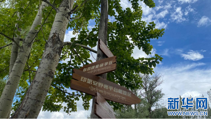 圖為薩己林野奢營地路標(biāo)(8月2號(hào)攝)。新華網(wǎng)發(fā) 丹增卓嘎(實(shí)習(xí)生)攝。
