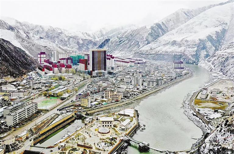 12月的藏北高原已被嚴(yán)寒籠罩,頂著風(fēng)雪,記者來(lái)到素有“藏北江南”美譽(yù)的比如縣,縣城里縱橫交錯(cuò)的柏油路、水泥路在白雪的映襯下,顯得格外開(kāi)闊整潔;街道兩旁高大挺拔的樹(shù)披上了綿綿白雪,樹(shù)枝上懸掛著亮晶晶的銀條;一棟棟紅白色調(diào)搭配的房屋外墻,經(jīng)過(guò)雪水的蕩滌,反射著太陽(yáng)的光輝,嶄新如初、盡顯生機(jī)……