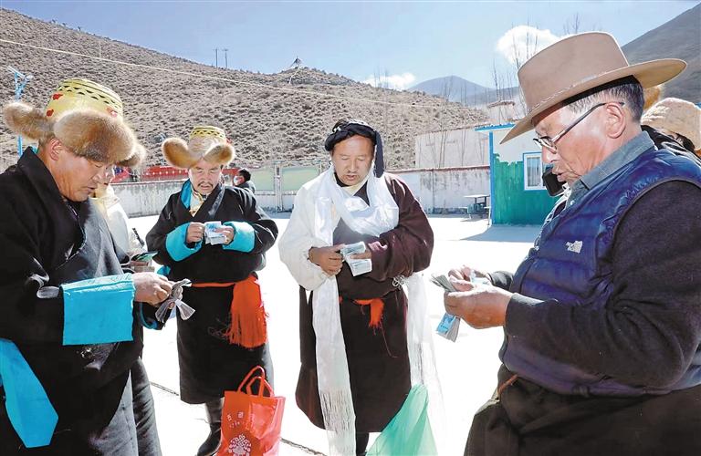 圖為分紅現(xiàn)場(chǎng)。 記者 格桑倫珠 記者 頓珠扎西 攝