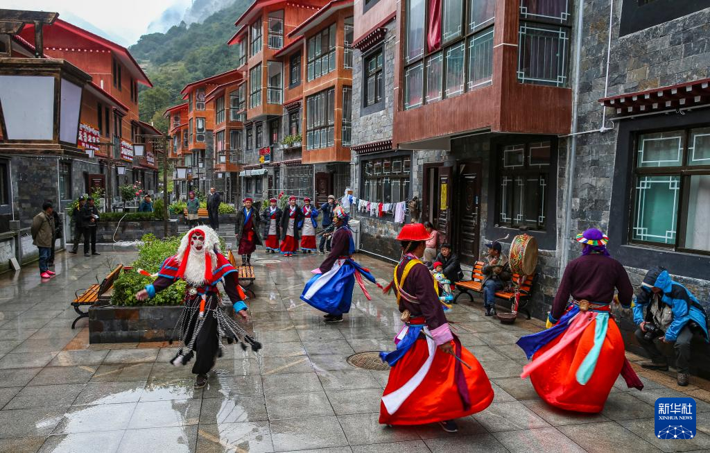 一排排整齊劃一的房屋前,門巴族同胞們正在表演“山南門巴戲”,他們載歌載舞、歡聲笑語。門巴文化獨(dú)具特色,山南門巴戲距今已有200余年歷史,劇情豐富、有聲有色,被列入國(guó)家級(jí)非物質(zhì)文化遺產(chǎn)名錄。