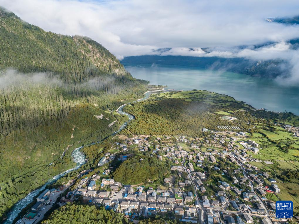 這是7月20日拍攝的西藏林芝市工布江達(dá)縣錯高鄉(xiāng)結(jié)巴村景色(無人機照片)。新華社記者 孫非 攝