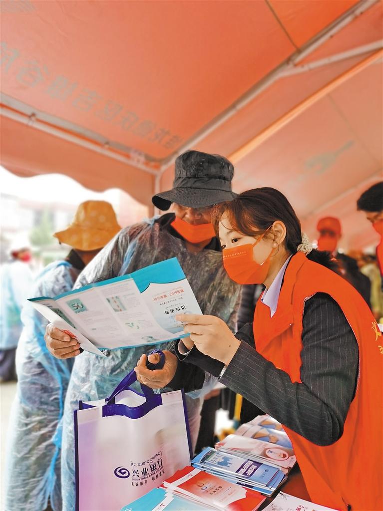 圖為興業(yè)銀行拉薩分行志愿者開展金融知識(shí)宣傳。