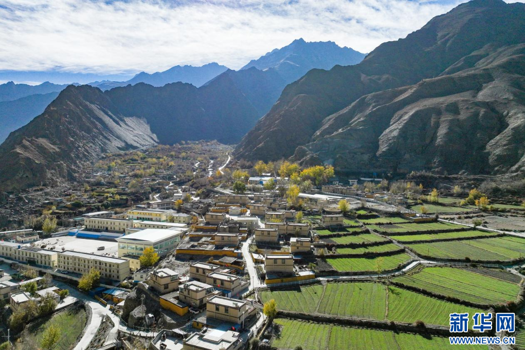 11月16日,西藏隆子縣加玉鄉(xiāng)境內拍攝的村莊與農(nóng)田(無人機照片)。新華網(wǎng) 柑丹鴦琦 攝