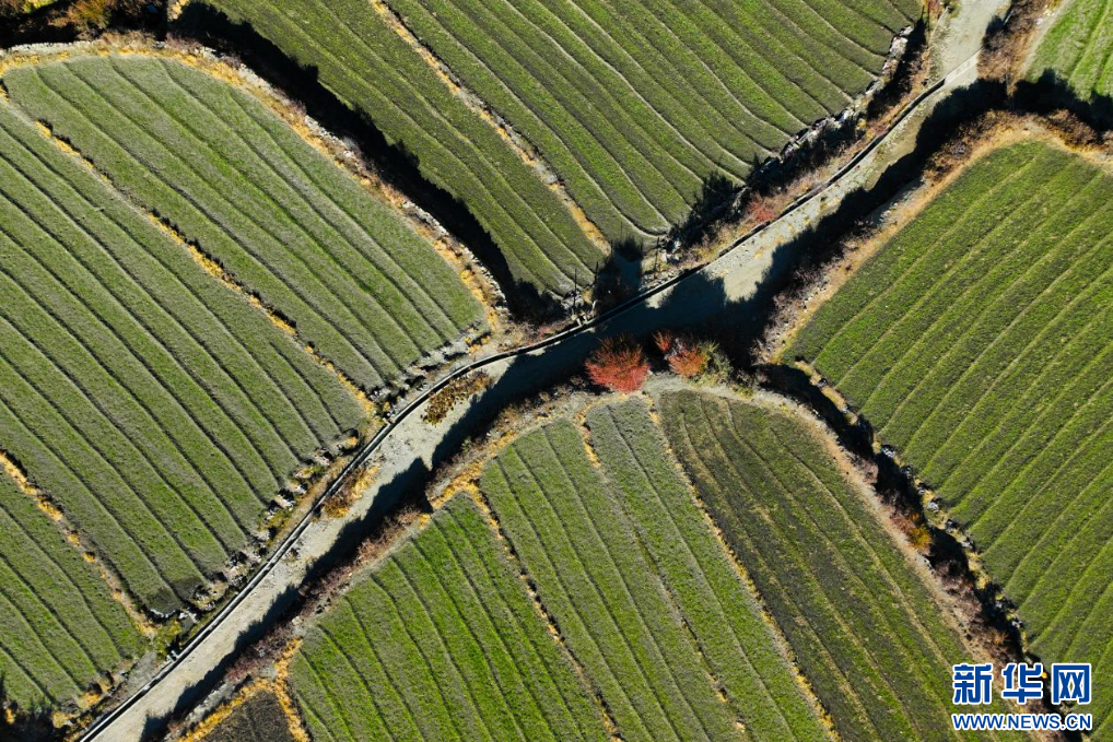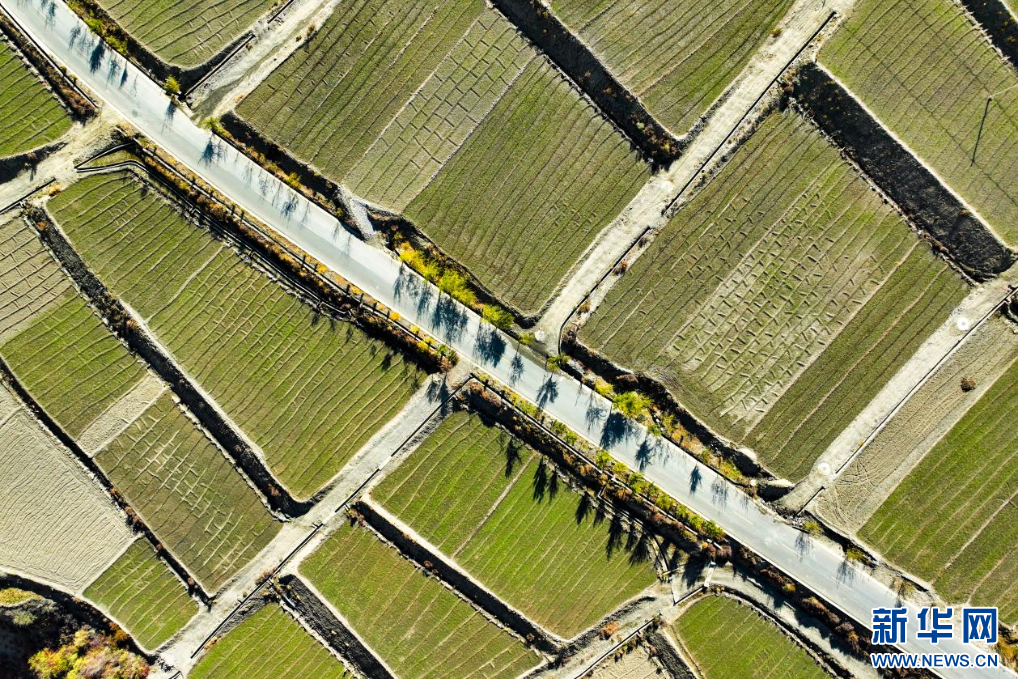 11月16日,西藏隆子縣加玉鄉(xiāng)境內拍攝的農(nóng)田(無人機照片)。新華網(wǎng) 旦增努布 攝