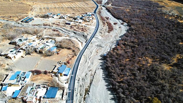 12月12日,山南市瓊結(jié)縣拉玉鄉(xiāng)鄉(xiāng)村旅游公路拓寬工程項(xiàng)目通車儀式在拉玉鄉(xiāng)白那村舉行。該公路長(zhǎng)度為10.18公里,路基寬度為7.5米,屬于三級(jí)公路,總投資3500萬(wàn)元。這條鄉(xiāng)村旅游公路的建成通車,不僅方便周邊村民出行,同時(shí)對(duì)開發(fā)當(dāng)?shù)剜l(xiāng)村旅游資源具有重要價(jià)值。 拉玉鄉(xiāng)鄉(xiāng)村旅游公路(無(wú)人機(jī)照片)。本報(bào)記者 白瑪澤旺 攝
