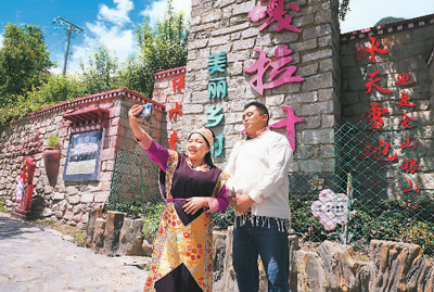 村民巴珍家的藏式小樓,院內(nèi)鮮花簇簇、室內(nèi)溫暖如春,二樓的3個房間租給旅游企業(yè)用作客房。“一年房租收入有2萬多元,我在旅游公司打工,月工資4000多元,一年收入七八萬元,關(guān)鍵是工作生活都在自己村里,簡直是太方便了?!卑驼浜軡M意現(xiàn)在的生活。旦增達杰介紹,光房屋租金一項,村民戶均年增收3萬多元。