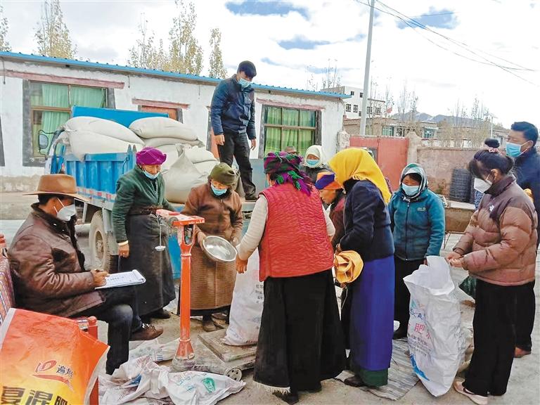 圖為拉薩凈土集團在收購林周縣群眾種植的青稞。記者 拉巴桑姆 攝