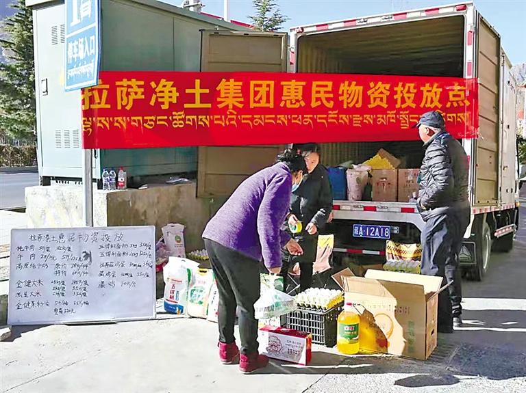 圖為拉薩凈土集團惠民物資投放點。記者 拉巴桑姆 攝