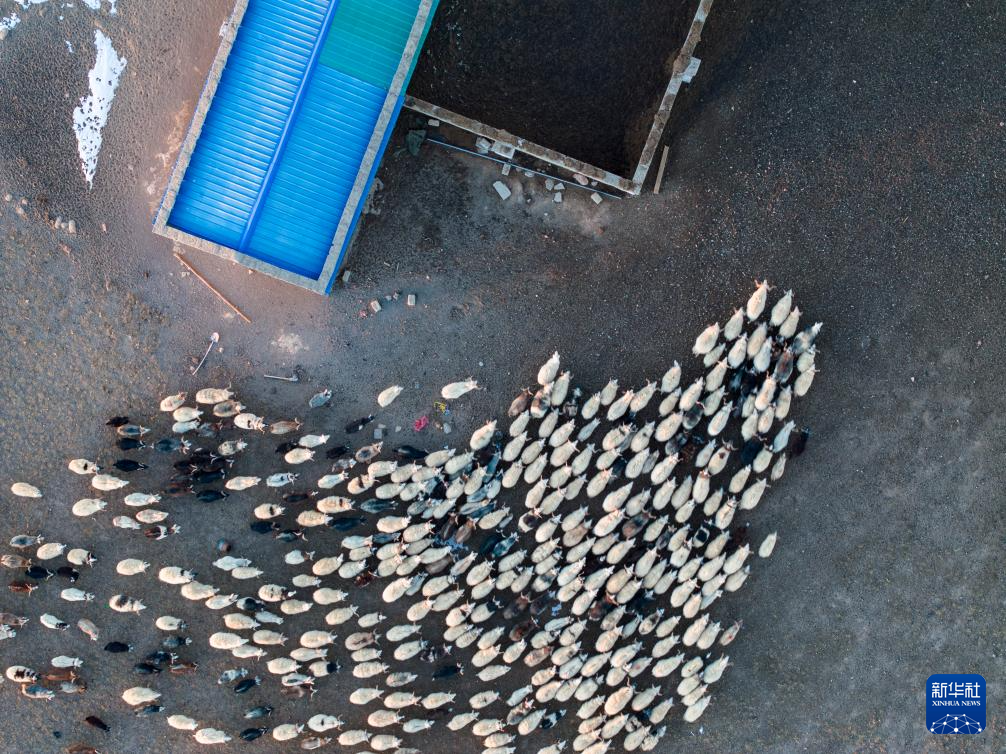 丹增家的羊正進(jìn)入新羊圈(12月18日攝,無人機(jī)照片)。新華社記者姜帆 攝