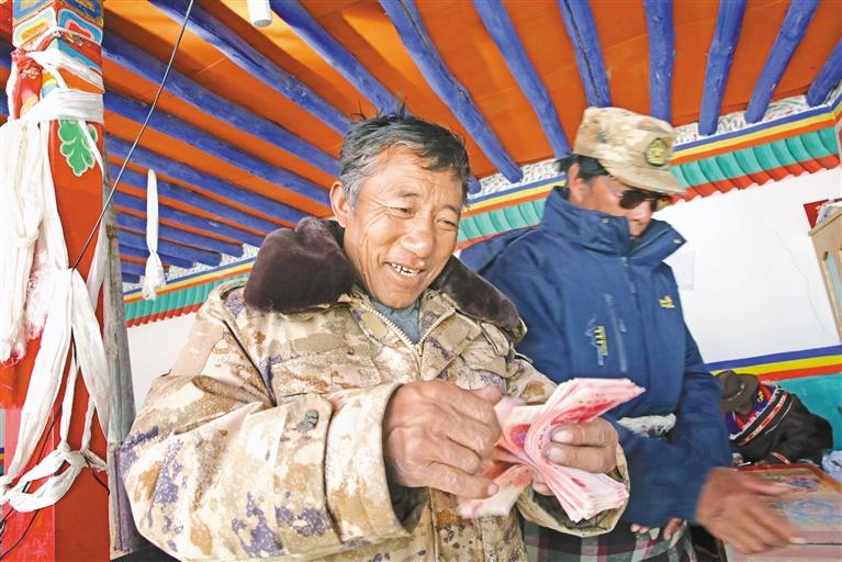圖為多瑪鄉(xiāng)合作社社員喜領分紅。 通訊員 嘎瑪次仁 攝