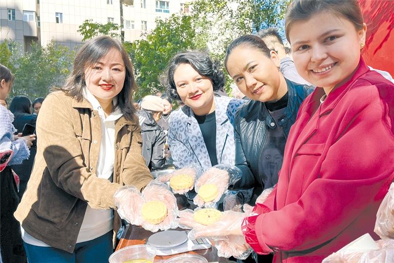 烏魯木齊市委辦公室駐天山區(qū)黑甲山街道躍進街南社區(qū)工作隊聯(lián)合社區(qū),開展“慶中秋迎國慶·共筑美好家園”主題活動。 孫振嵩 攝