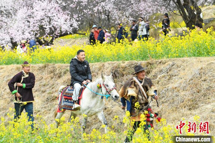 圖為在桃花園內(nèi),游客體驗(yàn)騎馬。貢嘎來松 攝